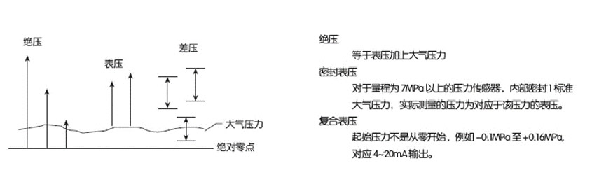 一般压力传感器压力表上所指出的气体压力,并不是代表气体的真实压力,而为超出大气之压力值,也就是说没有把大气压力计算在内。指示压力是以大气压力为零算起的。也叫表压力或计压力。简称表压。表压力=优良压力-大气压。表压是相对于大气压而言。
